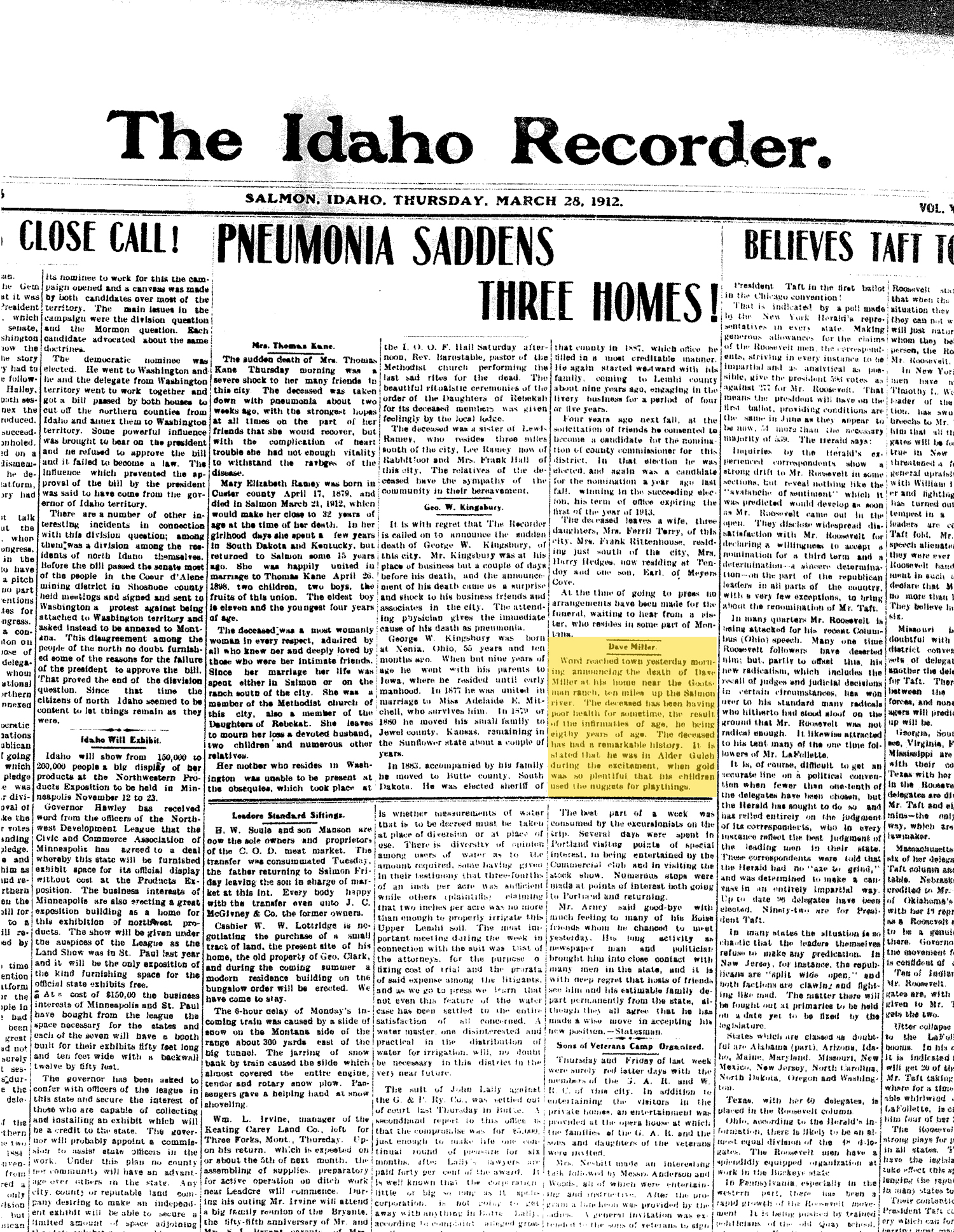 - The Idaho Recorder, Microfilm 12, Salmon Public Library